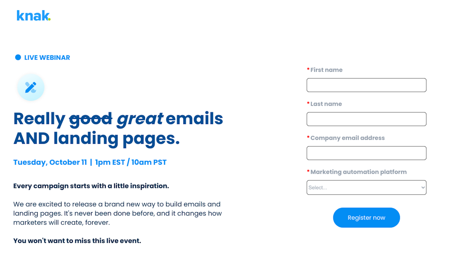 A landing page builder like Knak provides marketers with the ability to build and design landing pages without needing to know any code. Knak's feature set extends to Marketo forms and allows users to design without needing to know any CSS.