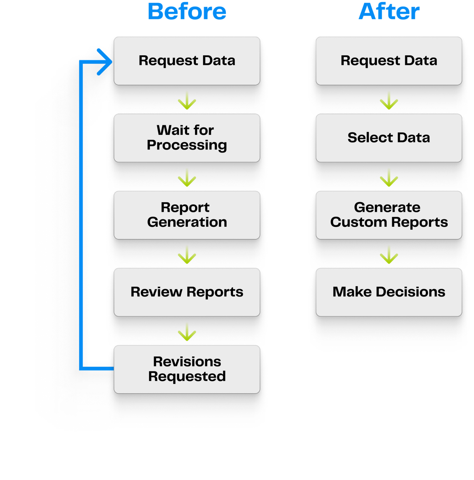 The idea behind self-serve is that anyone in the organization can and will use this technology instead of the previous manual processes. From there, end users—executives, managers, and individual contributors—can view those analytics and make decisions without needing to request data from the team.