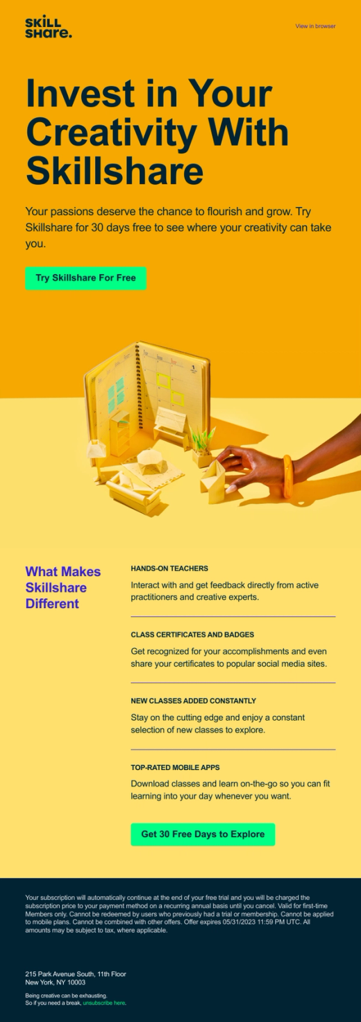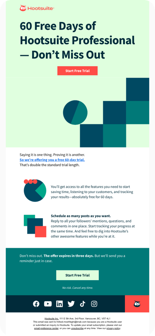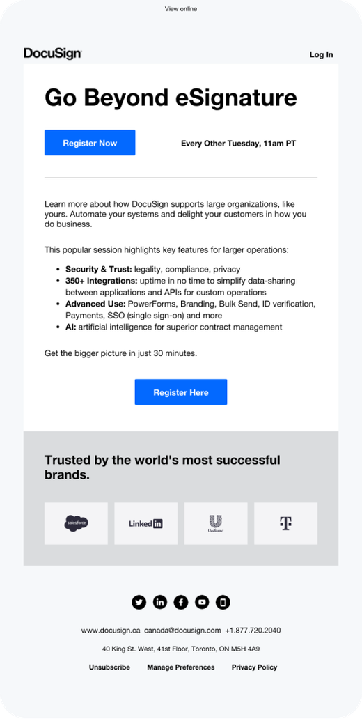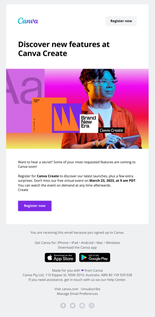 Use promotional emails to promote sign-ups and conversions for your product, service, or event.