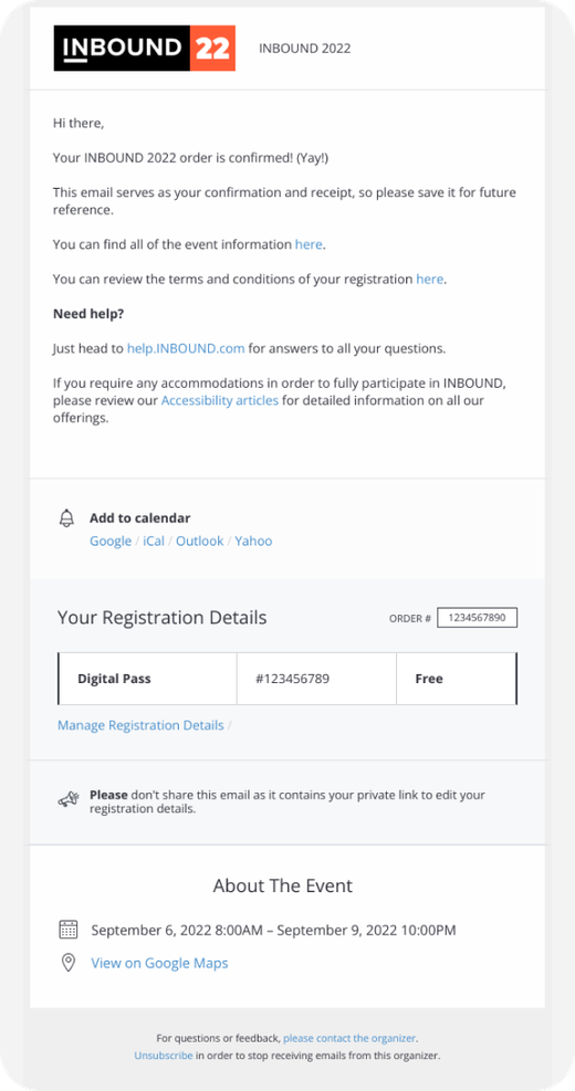 Follow up with event attendees with a beautiful email to thank them for attending.