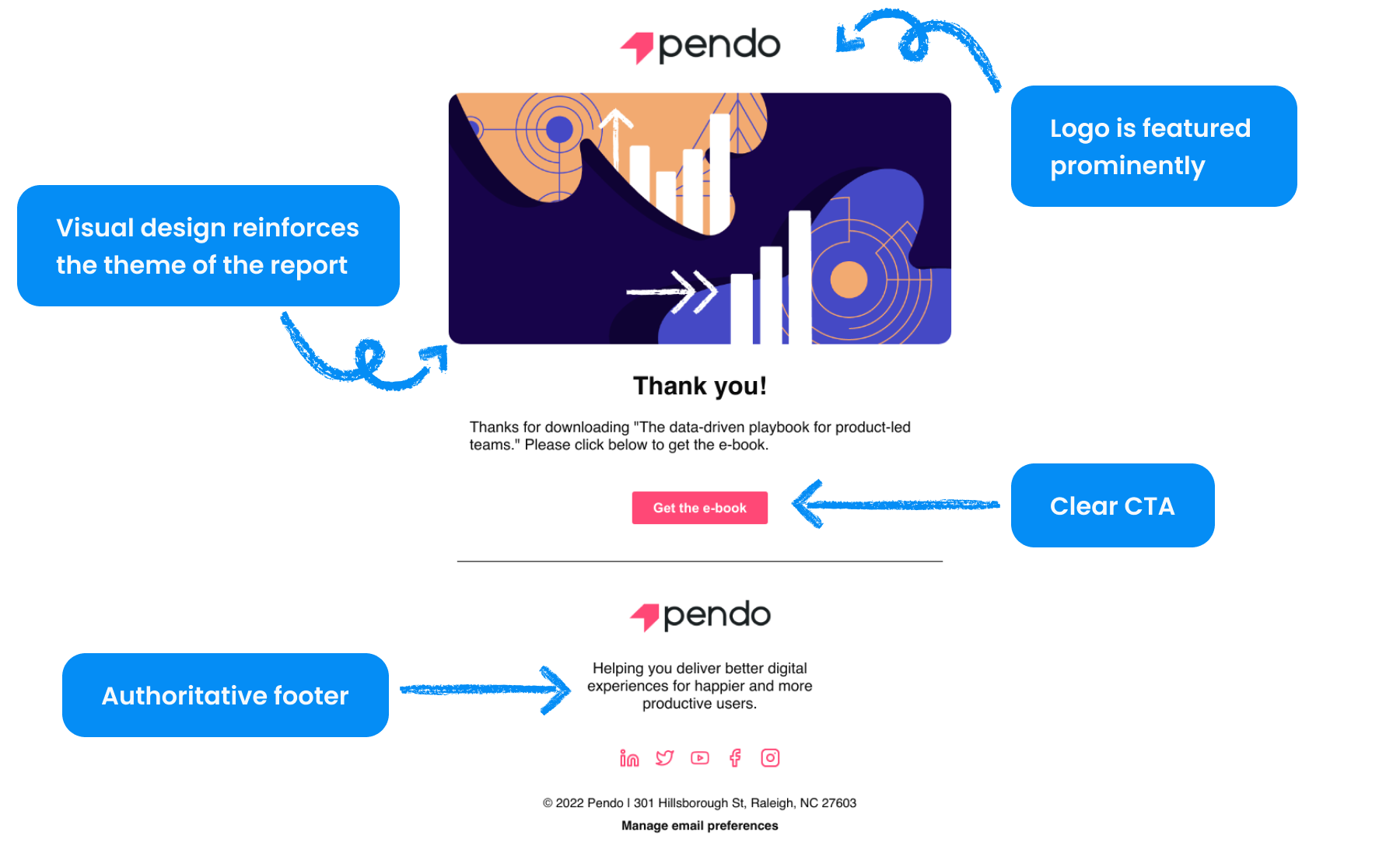 There are a lot of factors to consider when building a content download email. Here are some of the email elements to consider.