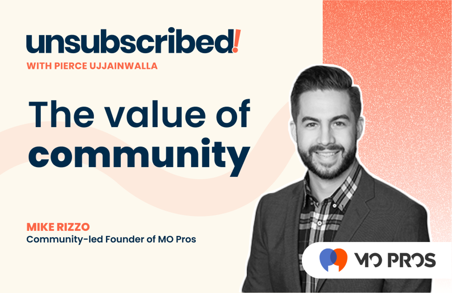 In this latest episode of the Unsubscribed! Podcast, Pierce has a great conversation with Mike Rizzo, the founder of marketing ops community MO Pros. During their chat, they cover everything from the story behind how Mike grew the community to 2,000 members, what makes this space unique, and the vision he has for it moving forward.